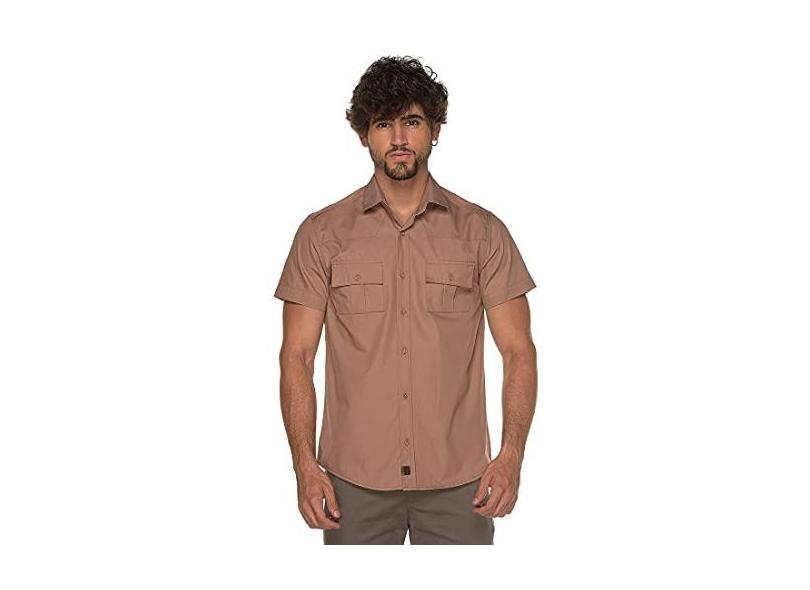 Camisa Manga Curta Slim Masculina Bolso Algodão Lisa Moderna