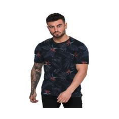 Camiseta Masculina Marinho Folhas de Verão