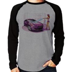 Camiseta Raglan Lava Jato Carro Roxo Manga Longa - Foca Na Moda