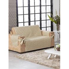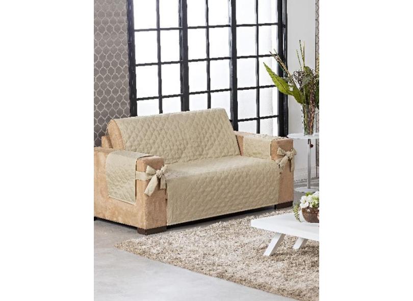 Capa De Sofá 2 Lugares Cáqui Com Laço Porta Objetos Lateral