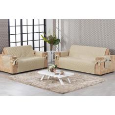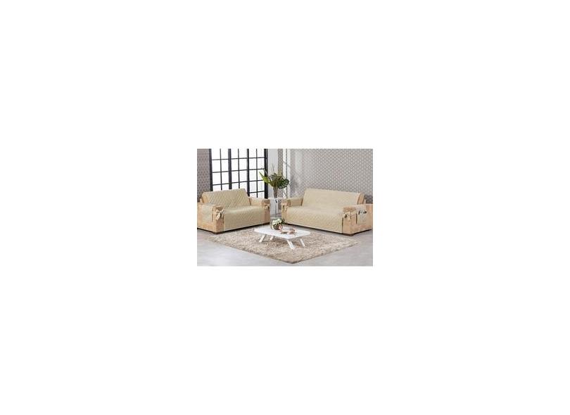 Kit Capa De Sofá 2 E 3 Lugares Com Laço Bege