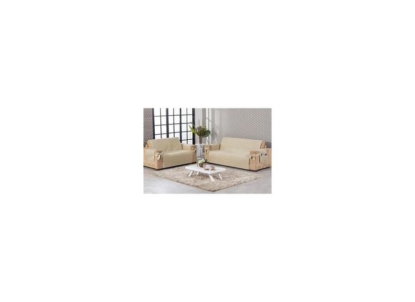 Kit Capa De Sofá 2 E 3 Lugares Com Laço Bege Matelado