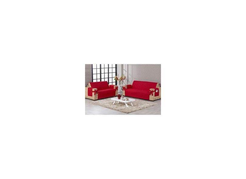 Kit Jogo Capa De Sofá 2 E 3 Lugares Vermelha Com Laço