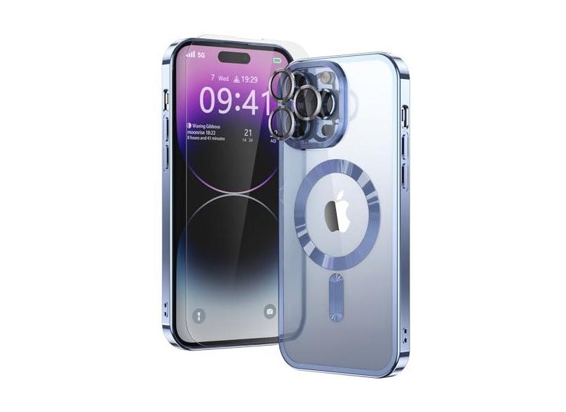 (2024) Capa magnética transparente para iPhone 14 Pro com MagSafe, com proteção para lente de câmera e protetor de tela, capa de telefone fina fina magnética segura para mulheres meninas homens para