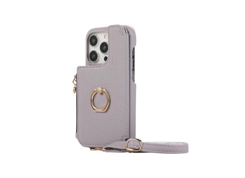 Anel titular crossbody zíper cartões solt carteira capa de couro para iphone 15 pro max 14 plus 13 12 11 se 2022 capa de espelho, lavanda, para iphone 13