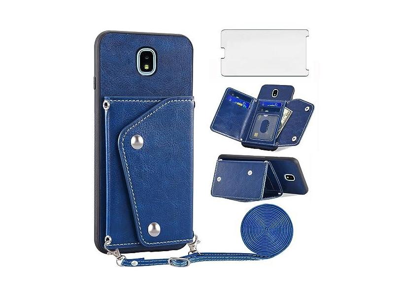Asuwish Capa de telefone para Samsung Galaxy J3 Orbit J 3 Star 2018 3J Achieve capa carteira com protetor de tela suporte para cartão alça transversal acessórios para celular J3V V 3ª geração SM J337A
