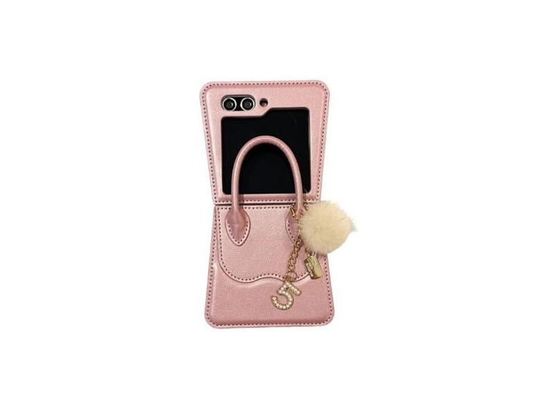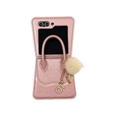 Bolsa crossbody capa de telefone para Samsung Galaxy Z Flip 5 4 3 Flip5 Flip4 Flip3 Fofo bola pérola cordão capa de couro, rosa, para Galaxy Z Flip3 5G