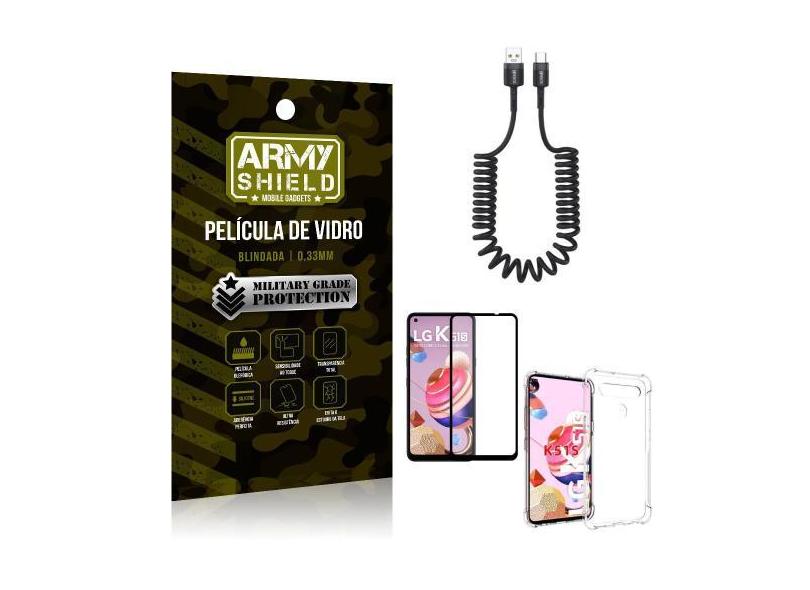 Cabo Espiral LG K51s + Capinha Anti Impacto + Película 3D - Armyshield