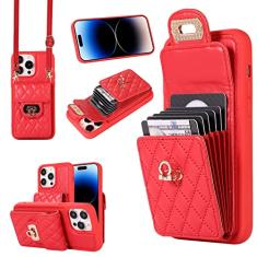 Capa carteira acordeão para iPhone 12 Pro Max, capa de telefone de couro com 6 compartimentos para cartão e fecho de metal, capa de telefone à prova de choque com cordão transversal ajustável para