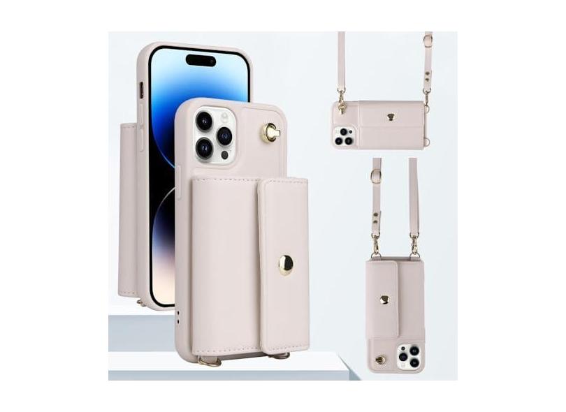 Capa carteira com alça de ombro para iPhone 15 Pro Max 14 13 12 11 Pro Max 15 Plus 14 Plus Capa traseira com cordão para cartão de couro, branco leitoso, para iPhone 15Pro Max