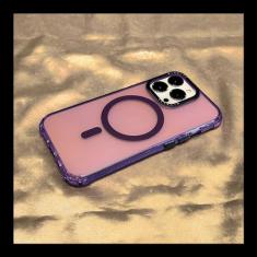 Capa de carregamento sem fio magnética transparente fosca de cor fluorescente luxuosa para iPhone 13 14 Pro Max Armor Cover, roxa, para iPhone 14 ProMax