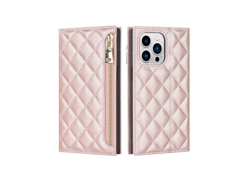 Capa de couro tipo carteira com zíper crossbody para iPhone 14 Pro Max 13 12 Mini 11 7 8 Plus SE 2022 com suporte para cartão e alça de cordão, ouro rosa, para iPhone 7P 8Plus
