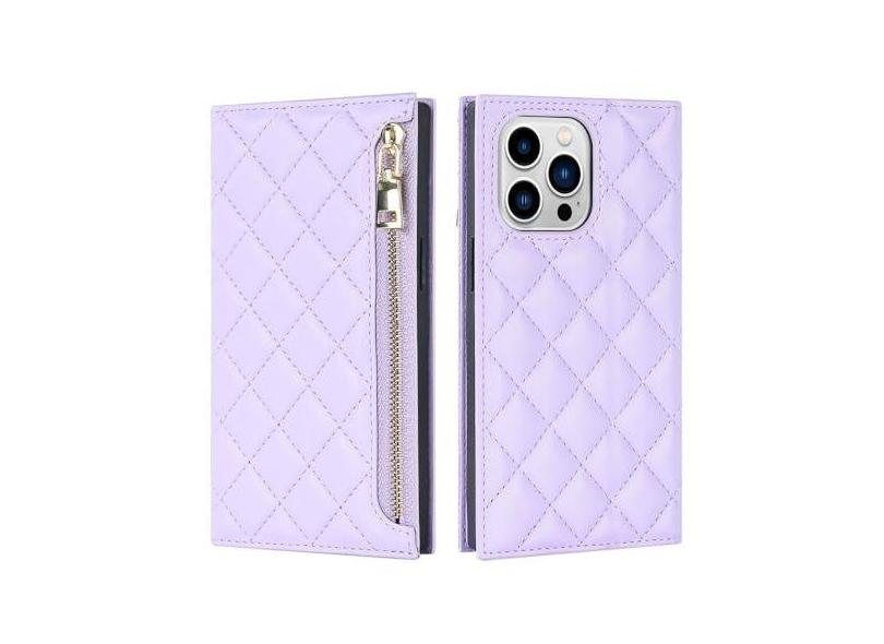 Capa de couro tipo carteira com zíper crossbody para iPhone 14 Pro Max 13 12 Mini 11 7 8 Plus SE 2022 com suporte para cartão e alça de cordão, roxa, para iPhone 11