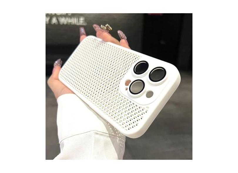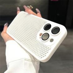 Capa de malha respirável com dissipação de calor para iphone 15 14 11 12 13 pro max plus capa dura de proteção de lente, branca, para iphone 15pro max