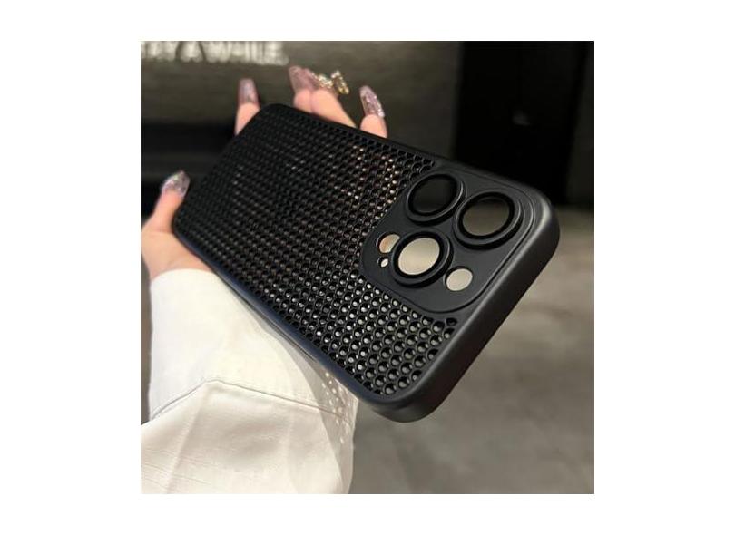 Capa de malha respirável com dissipação de calor para iphone 15 14 11 12 13 pro max plus capa dura de proteção de lente, preta, para iphone 15 plus