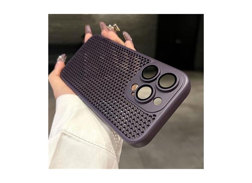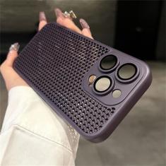 Capa de malha respirável com dissipação de calor para iPhone 15 14 11 12 13 Pro Max Plus Capa dura de proteção de lente, roxo escuro, para iPhone 14 Plus