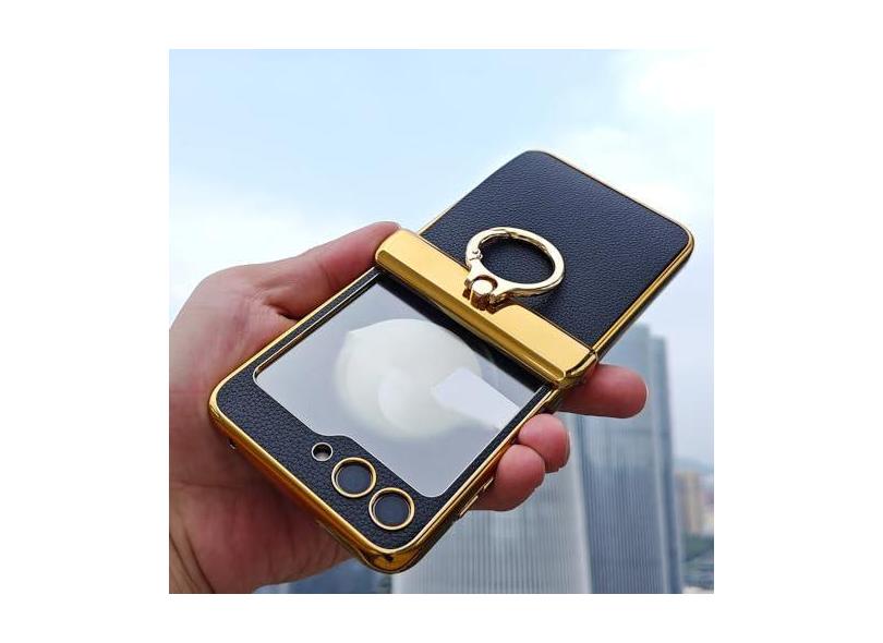 Capa de proteção de dobradiça magnética de couro revestido para Samsung Galaxy Z Flip 5 4 3 Suporte de anel de luxo com capa de tela de vidro, roxo, para Galaxy Z Flip 3