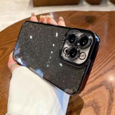 Capa de silicone com brilho quadrado luxuoso para iPhone 14 13 12 Mini 11 Pro Max X XR XS 7 8 Plus SE2022 Capa de lantejoulas macias, preta, para iPhone11Pro Max