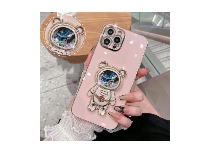 Capa de suporte dobrável de urso de areia movediça astronauta para iPhone 15 14 ProMax Plus 13 12 11 Pro Max XR Xs Max Capa macia de silicone de Natal, rosa, para iphone 15