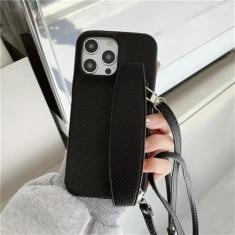 Capa de telefone com alça de pulso crossbody para iPhone 13 12 15 14 11 Pro Max XS XR 8 7 Plus Capa de couro PU à prova de choque, preta, para iPhone 13Pro Max