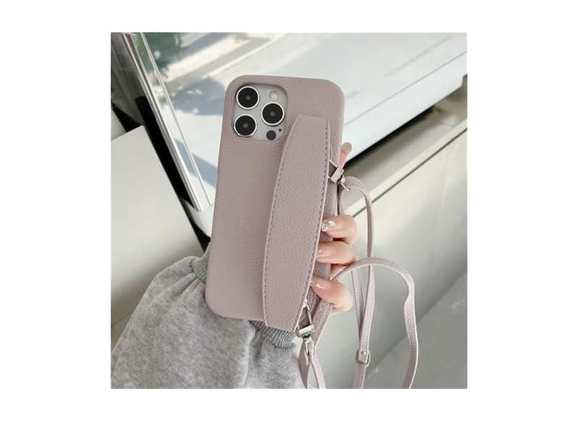 Capa de telefone com alça de pulso crossbody para iPhone 13 12 15 14 11 Pro Max XS XR 8 7 Plus Capa de couro PU à prova de choque, roxo claro, para iPhone 12 (12Pro)