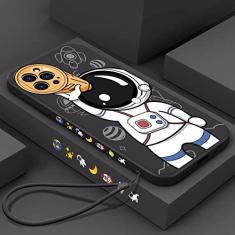Capa de telefone com cordão de mão de astronauta bonito para iPhone 13 12 11 Pro Max XS Max XR X 8 7 Plus Silicone Líquido Amortecedor Macio Capa Traseira, C, Para iPhone 13 Mini
