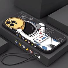 Capa de telefone com cordão de mão de astronauta bonito para iPhone 13 12 11 Pro Max XS Max XR X 8 7 Plus Silicone Líquido Amortecedor Macio Capa Traseira, D, Para 7 ou 8 ou SE2