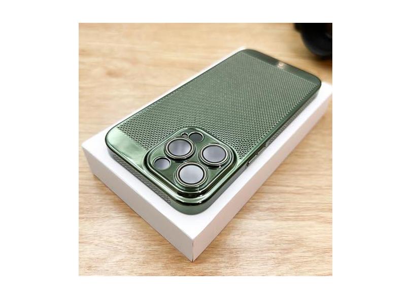 Capa de telefone com dissipação de calor galvanizada dura para iPhone 11 12 13 14 15 Pro Max 7 8 14 15 Plus XS Max Chapeamento capa respirável, verde, para iPhone 13