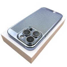Capa de telefone com dissipação de calor respirável revestida para iPhone 15 14 13 12 11 Pro Max 7 8 Plus XR XSMax Capa galvanizada fina e dura, azul claro, para iPhone 8 Plus