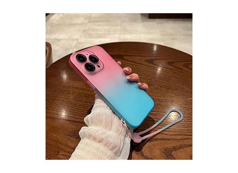 Capa de telefone com gradiente fosco fosco para iPhone 14 Pro 13 12 Pro Max 14 Plus 13 proteção de lente capa dura à prova de choque com cordão, rosa azul, para iPhone 14 ProMax
