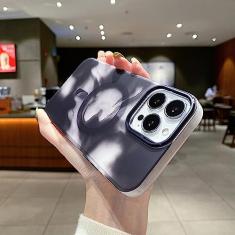 Capa de telefone com pintura em aquarela magnética sem fio para iPhone 13 14 Pro MAX Rainbow Silicone Capa macia, preta, para iPhone 13