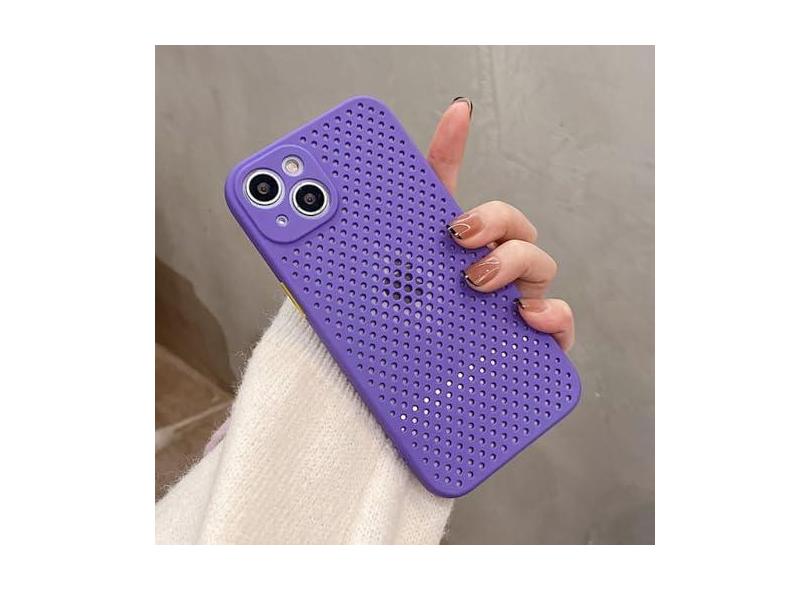 Capa de telefone com resfriamento respirável e dissipação de calor para iPhone 13 12 11 Pro XS Max XR Mini 7 8 Plus SE2020 Capa de TPU macia em cor doce, roxa, para iPhone XS Max