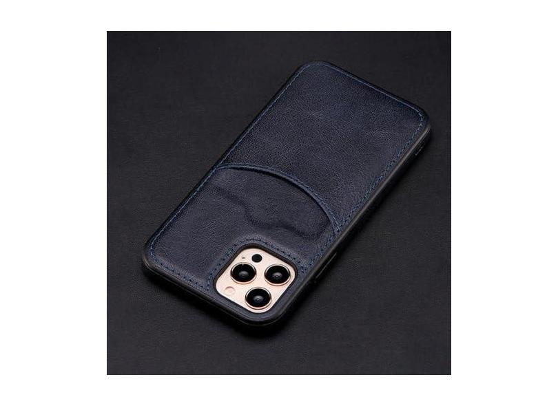 Capa de telefone com slot para cartão de carteira empresarial para iPhone 13 Pro Max 12 11 Xr X Xs 14 Plus 15 Pro Max Capa macia de couro PU de luxo, azul marinho, para iPhone 15