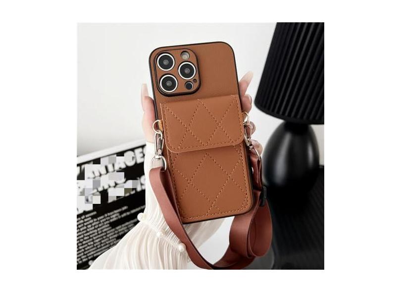 Capa de telefone crossbody de couro para iPhone 15 14 13 12 11 Pro XS Max XR X 7 8 6 6S Plus Carteira com capa de suporte de cartão, marrom, para iPhone X (XS)