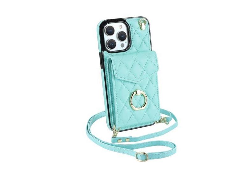 Capa de telefone de couro com alça de pulso crossbody para iPhone 13 12 Mini 15 14 11 Pro XS Max XR X 7 8 Plus Carteira com capa de suporte de cartão, verde, para iphone 11pro