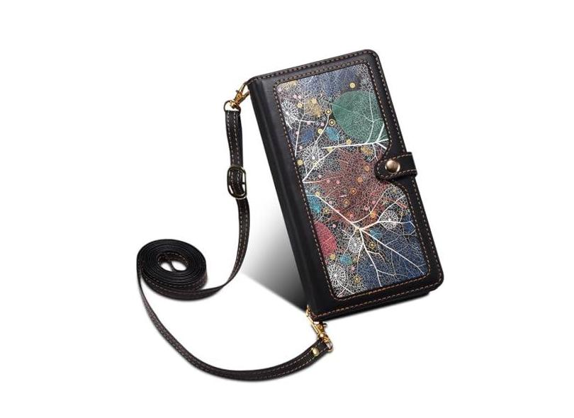 Capa de telefone de couro com cordão longo para iPhone 15 Pro Max 14 Plus 13 12 11 X XS XR Capa de cartão carteira com zíper, preta, para iPhone 12 Mini