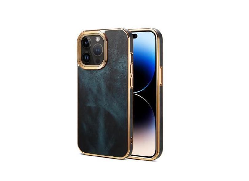 Capa de telefone de couro com moldura revestida oleada para iPhone 12 13 14 15 Pro Max 15Plus Capa macia de proteção de lente galvanizada, azul, para iPhone 14 Pro