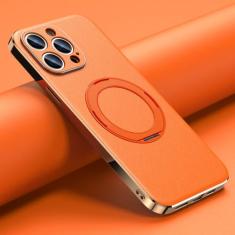 Capa de telefone de couro para iphone 14 12 13 15 pro max 15pro 14pro proteção de lente capa de suporte magnético, laranja, para iphone 15