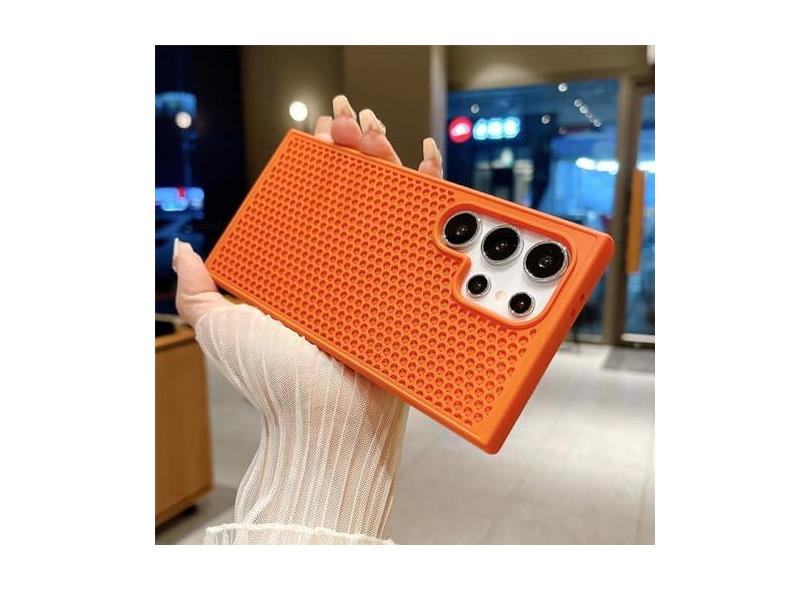 Capa de telefone de malha de dissipação de calor em favo de mel para Samsung S24 S23 FE S22 Ultra Plus com resfriamento respirável à prova de choque capa de cor sólida, laranja, para Samsung S24 Plus