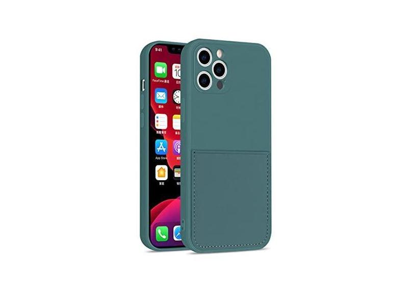Capa de telefone de silicone Candy Color para iPhone 12 13 SE 2020 11 Pro Max XS X XR 6 7 8 Plus Porta-cartão de carteira Capa macia à prova de choque, verde escuro, para iPhone XS Max