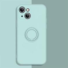 Capa de telefone de silicone líquido macio para iPhone 11 12 13 Pro Max 13Mini XS Max X XR 7 8 Plus SE 2020 Stand Ring Capa à prova de choque, ciano claro, para iPhone 11 Pro