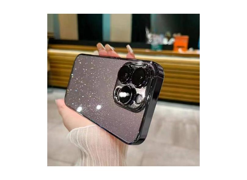 Capa de telefone luxuosa galvanizada com glitter para iPhone 11 12 13 14 Pro Max Plus Capa transparente à prova de choque, preta, para iPhone 14plus