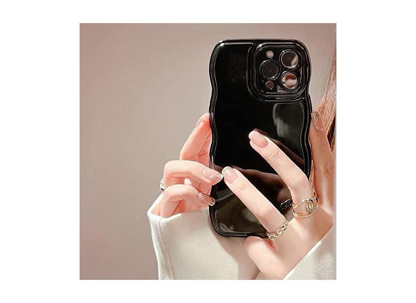 Capa de telefone ondulada de cor sólida e macia para iPhone 14 13 12 11 Pro Max 14 Plus Capa traseira de silicone simples, preta, para iPhone 14