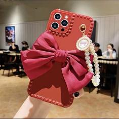 Capa de telefone para iphone 13 capa de pulseira de pérola arco para iphone 12 11 13 pro max mini x xr xs max 6 s 7 8 plus capa de telefone macia, th25x1, vermelho, para iphone 11 pro