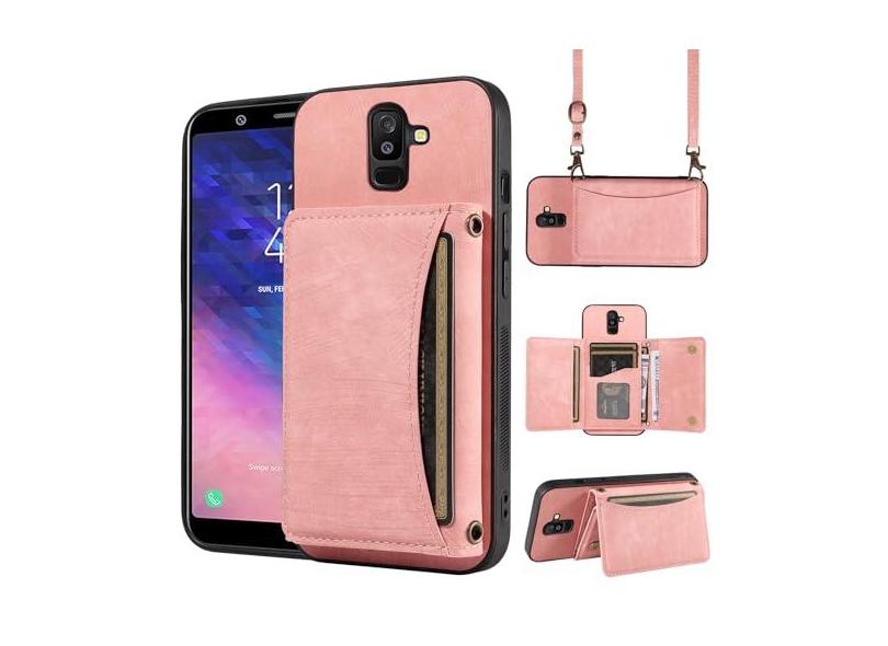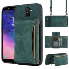 Capa de telefone para Samsung Galaxy A6 Plus/J8 2018 capa carteira com alça de ombro transversal e porta-cartão de crédito de couro bolso fino suporte acessórios para celular A6+ A6Plus 6A + mulheres
