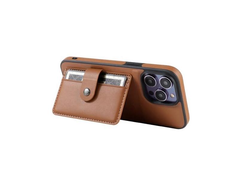 Capa de telefone TPU macia de cor sólida com suporte para cartão para iPhone 15 14 Plus 13 12 Pro Max Capa de couro com suporte de carteira, marrom, para iPhone 14