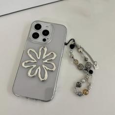 Capa de telefone transparente de girassol 3D prateada fofa com alça de contas para iPhone 15 13 14 12 11 Pro Max cola de gotejamento capa traseira de silicone macio, preta, para iPhone 12pro