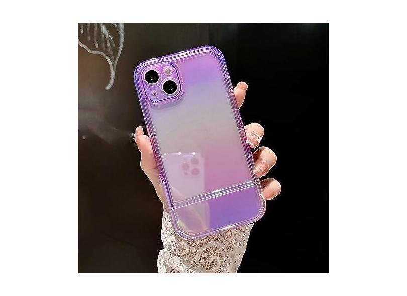 Capa de telefone transparente para suporte de cadeira colorida a laser de luxo para iPhone 11 12 13 Pro X XR XS MAX Capa traseira protetora elegante, roxa, para iPhone 12Pro Max