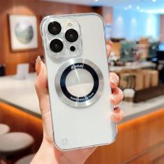 Capa de telefone ultrafina magnética sem moldura revestida para iPhone 14 Pro Max 13 12 Pro Max Buraco transparente para PC rígido, transparente, para iPhone 14