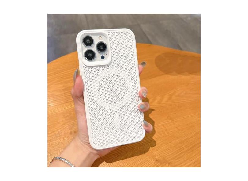 Capa luxuosa de dissipação de calor para iPhone 15 14 13 12 Pro Max Plus 11 Carregador sem fio respirável capa de cor sólida, branca, para iPhone 12 ProMax